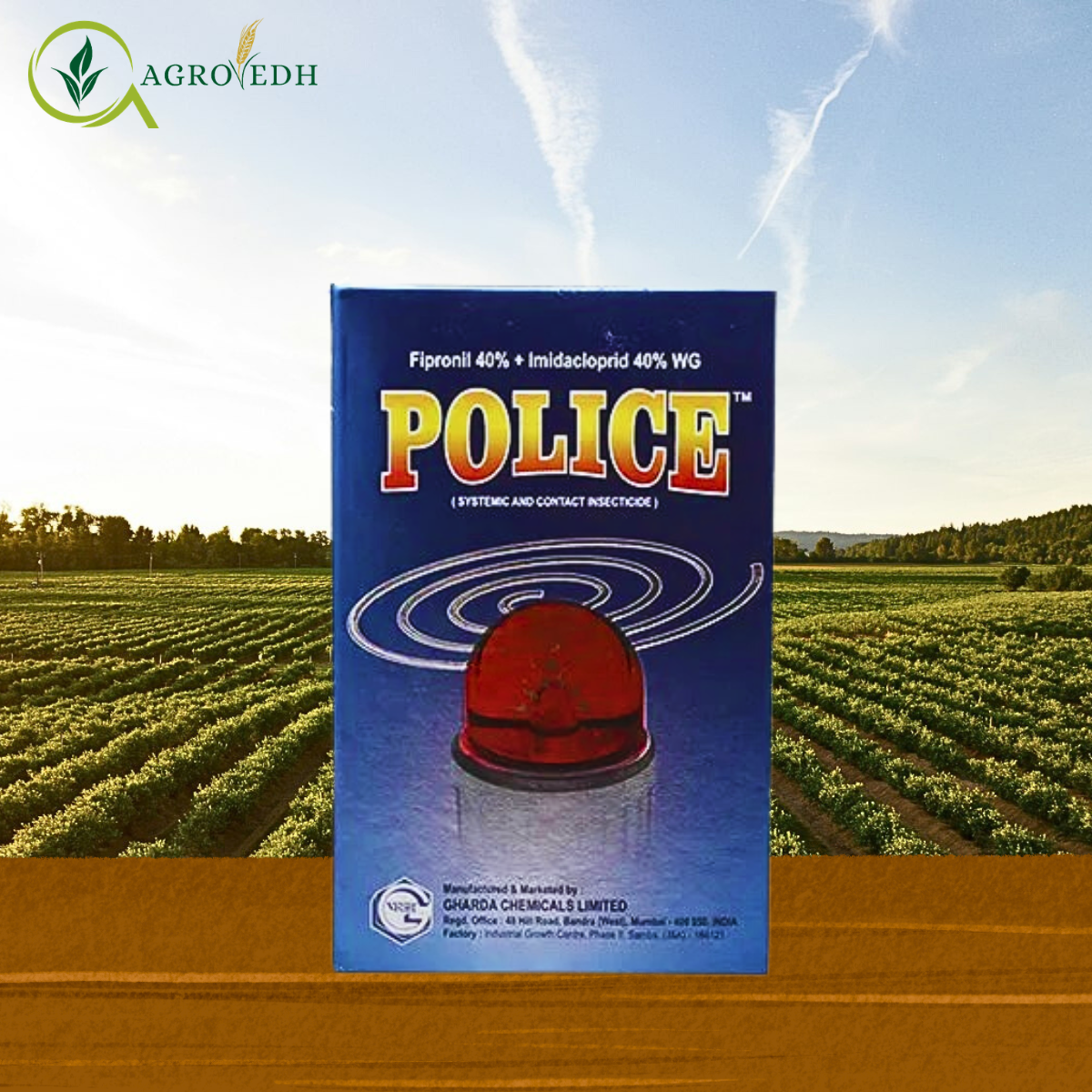 Police Insecticide is a powerful broad-spectrum systemic and contact insecticide formulated with Fipronil 40% + Imidacloprid 40% WG. This unique dual-chemistry formulation provides highly effective control over both sucking pests and soil-dwelling insects, making it a reliable solution for crops such as cotton, rice, vegetables, and fruits.