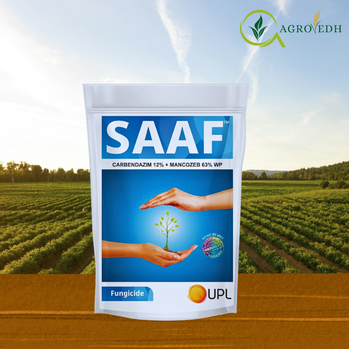 Saaf Fungicide is a trusted broad-spectrum fungicide containing Carbendazim 12% + Mancozeb 63% WP. It offers both systemic and contact action, delivering curative and preventive control against a wide range of fungal diseases.