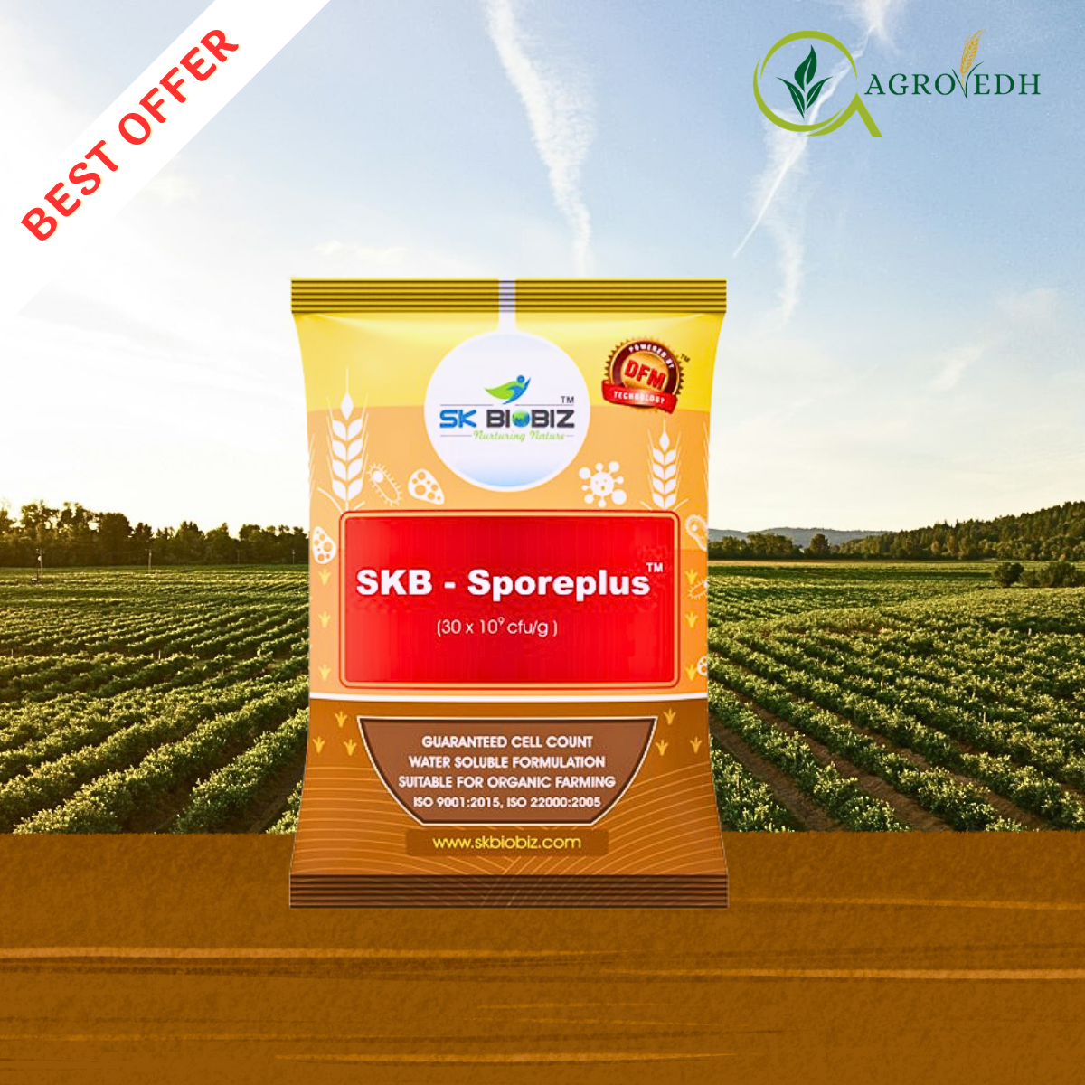 These beneficial bacteria produce natural antibiotics, enzymes, and metabolites that suppress disease-causing organisms and stimulate plant immunity. SKB Sporeplus is widely used in organic and integrated farming systems because it is environmentally safe, residue-free, and compatible with most agricultural inputs.