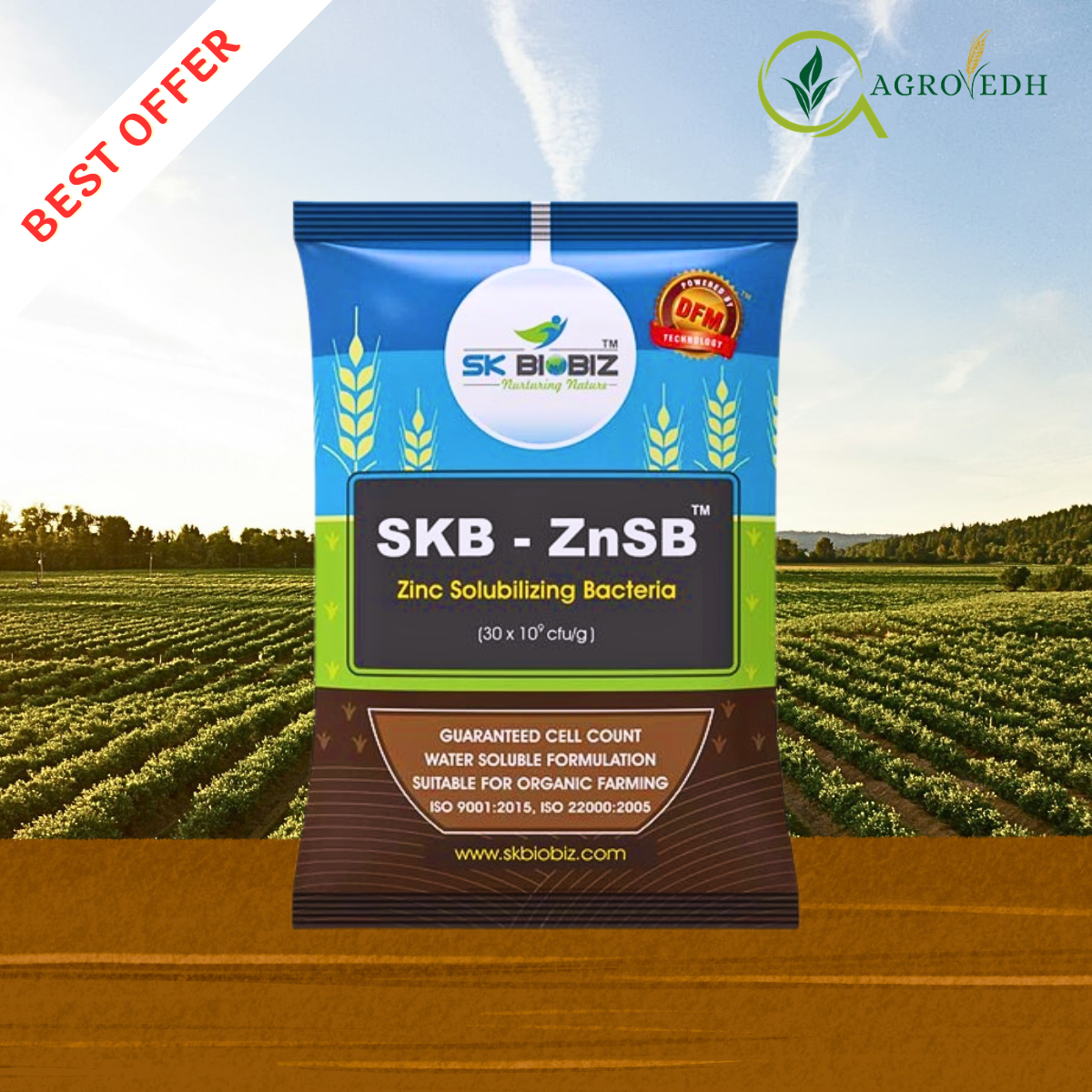 SKB – ZnSB (Zinc Solubilizing Bacteria) is a beneficial microbial biofertilizer designed to convert insoluble zinc present in the soil into plant-available forms. Zinc is one of the most important micronutrients required for crop growth, enzyme activation, chlorophyll formation, and hormone regulation. However, a large portion of zinc present in the soil remains locked in insoluble forms and cannot be absorbed by plants.