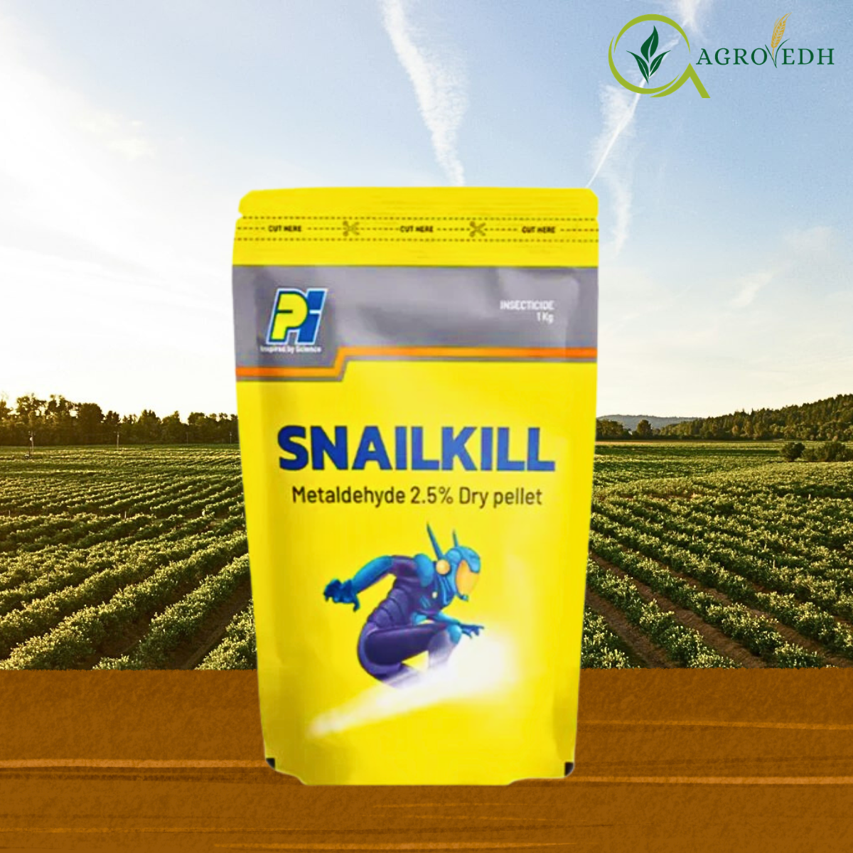 Snailkill Insecticide containing Metaldehyde 2.5% Pellet is a highly effective molluscicide designed to control destructive pests such as snails and slugs that damage vegetables, fruits, plantation crops, and field crops. These pests feed on tender leaves, seedlings, fruits, and stems, often causing severe yield losses in humid and irrigated farming conditions.