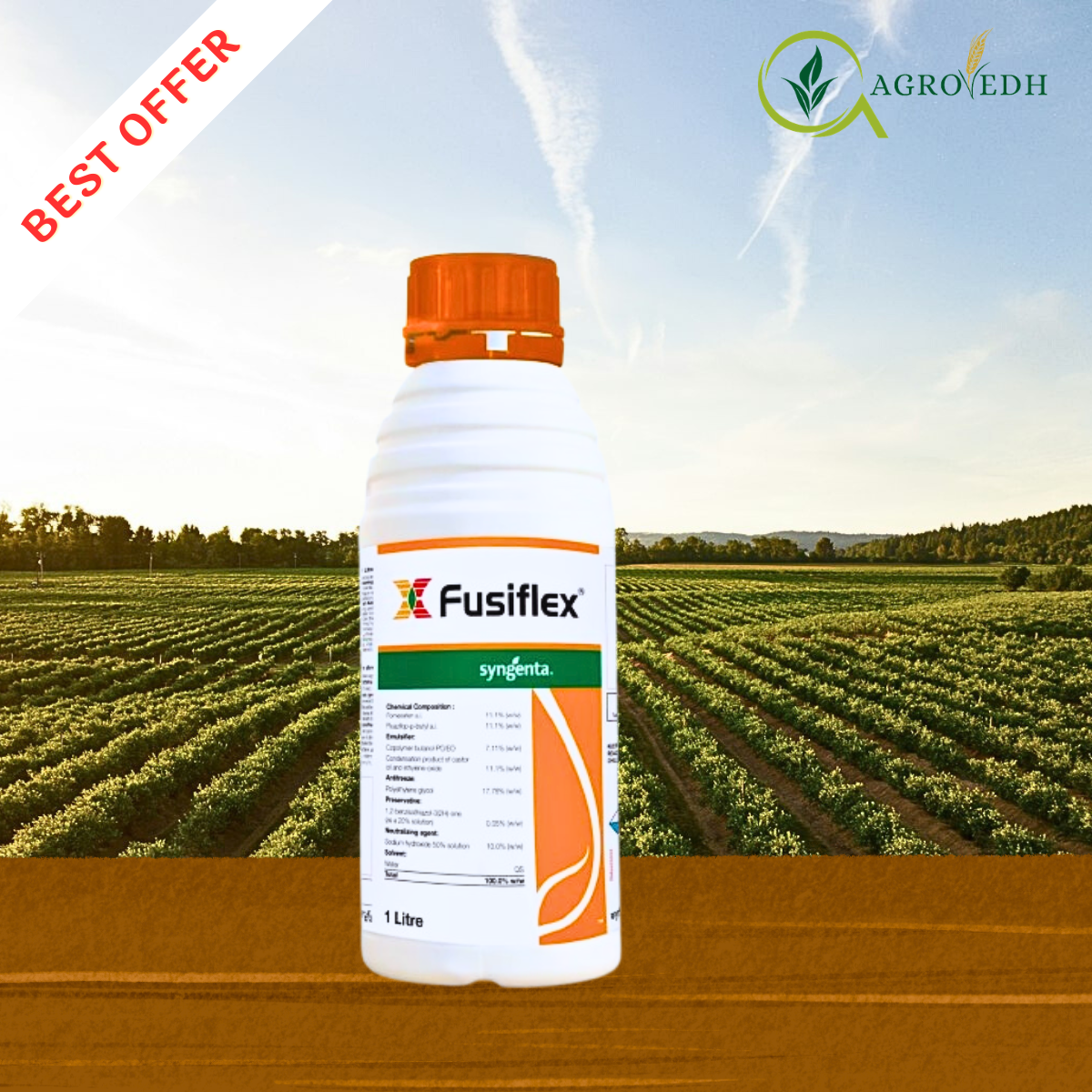 Syngenta Fusiflex Herbicide is a selective post-emergence herbicide designed to control both broadleaf weeds and grassy weeds in a single spray. It contains Fomesafen 11.1% + Fluazifop-P-Butyl 11.1% SL, a powerful combination that targets weeds through two different biochemical pathways, ensuring broad-spectrum weed management and improved crop safety.