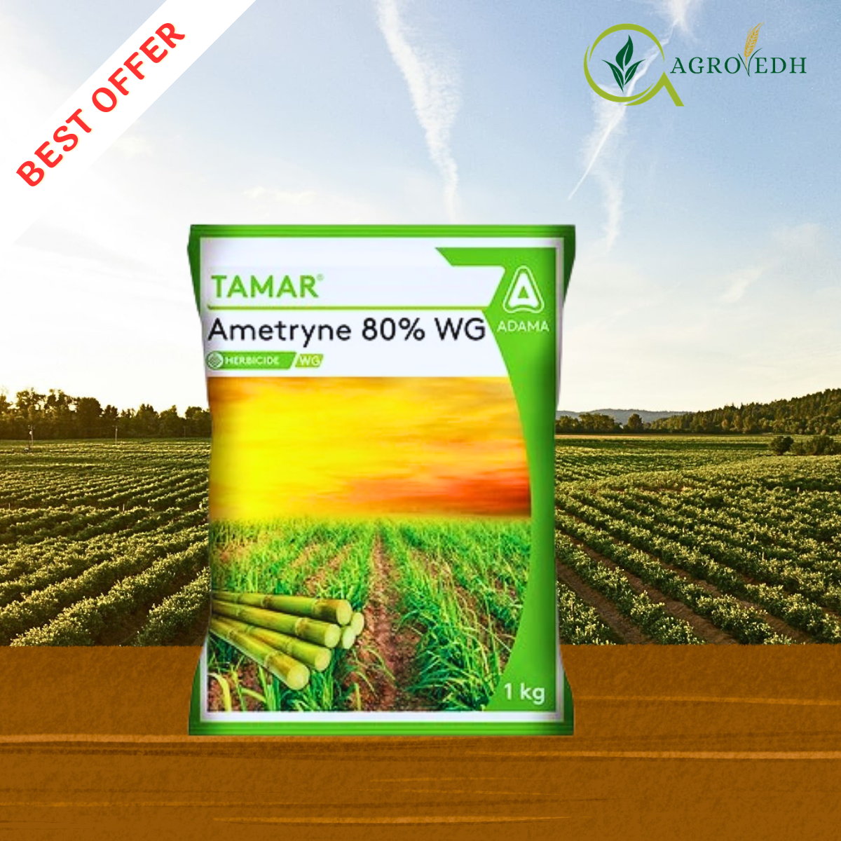 Adama TAMAR Herbicide is a selective early post-emergence herbicide containing Ametryn 80% WDG, designed to control grassy and broadleaf weeds in sugarcane. Its dual soil and foliar activity kills existing weeds while preventing new weed emergence, ensuring strong early crop establishment.