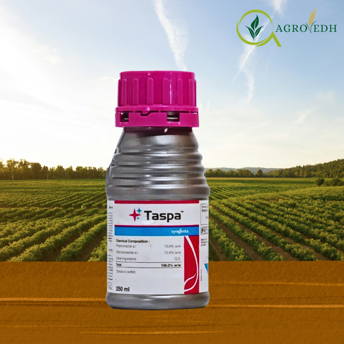 Taspa is a premium broad-spectrum systemic fungicide containing Propiconazole 13.9% + Difenoconazole 13.9% EC. This powerful dual-triazole combination provides preventive, curative, and eradicative action against a wide range of fungal diseases. Designed for high-value crops, Taspa delivers long-lasting protection by inhibiting fungal growth at multiple stages of development.